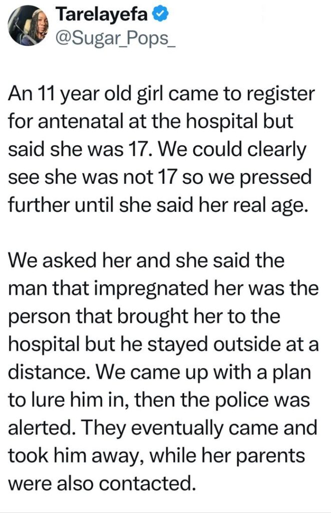 @_theMissB: We can blame poverty all we want, but that man is a w!cked man… he would still be w!cked if he were rich! How much did he trade his 11-year-old daughter’s future for? 150k. Sold her innocence, her childhood, her entire life into pregnancy and p@!n for 150k. Terr!ble.