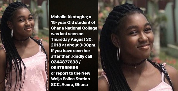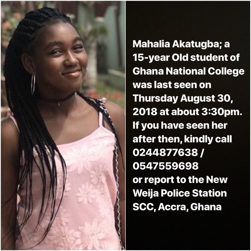Mahalia Akatugba, a 15-year-old Nigerian girl has been declared missing in Ghana – according to reports, she was last seen on August 30th.