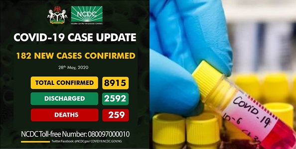 In the latest update of the Covid-19 pandemic in the country, 182 new cases have been reported as of Thursday evening, May 28th by the National Centre for Disease Control.