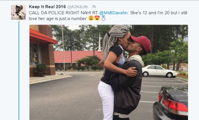 A Twitter User – Davahn Moore Shared These Photos of Himself kissing a girl who he says she’s his Girlfriend and she’s 12. The Photos are currently trending on Twitter right now.