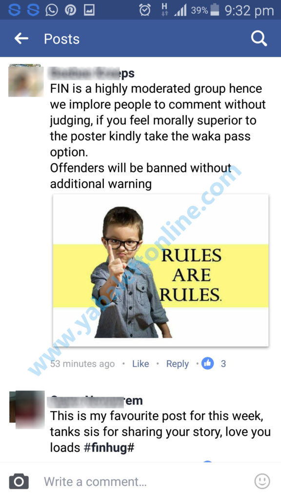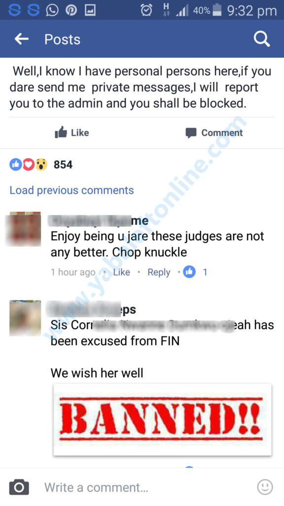 The shocking thing here is, those who condemned her for the act, where banned from the group, and we’ve got screenshots! We had to blur out the names of the members, just to protect our source!