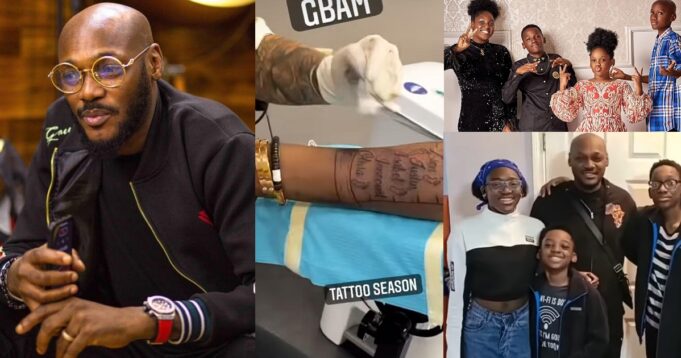Nigerian music icon, Innocent Idibia, popularly known as 2Baba, has inked tattoos of his seven children’s names on his arm.
