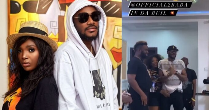 Popular Nigerian Singer, Innocent Idibia otherwise known as 2face, paid a surprise visit to his wife, Annie Idibia on set of a new movie and the adorable moment was captured and shared on social media by Actor Stan Nze.