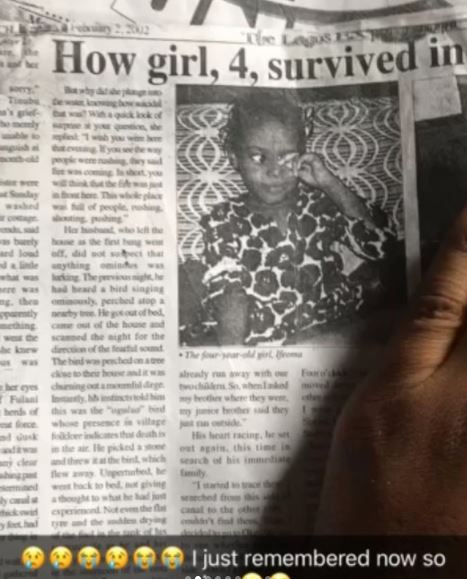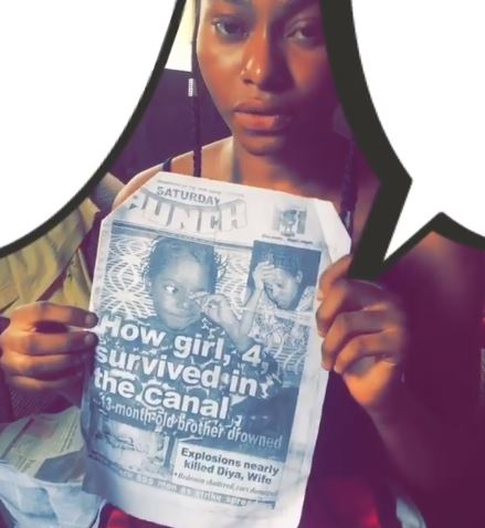 She took to her Instagram page to share a video of a newspaper which featured her when she was 4-year-old after surviving the bomb blast.
