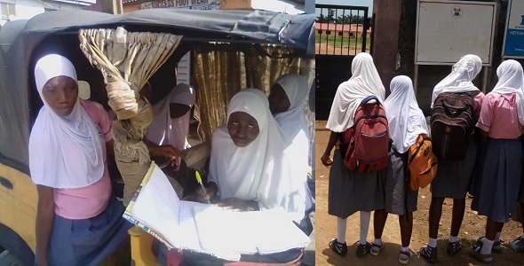 “These are Senior Secondary School Two and Three students who need to study hard for their examinations. When we got to the school this morning, we saw some of the students copying notes for lessons they have missed on Monday and Tuesday while the others were teaching themselves old lessons inside a tricycle on the street. This is disastrous for us. While there colleagues were in the classrooms learning, they were on the street just for being Muslims.”