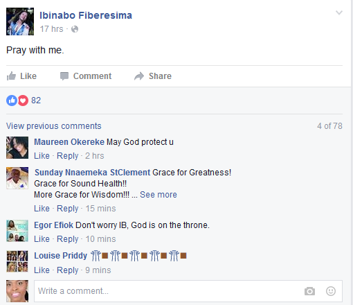 She had bursted into tears when that happened. Few hours after the news broke online, the Actress took to her Facebook to Urge everyone to pray with her.