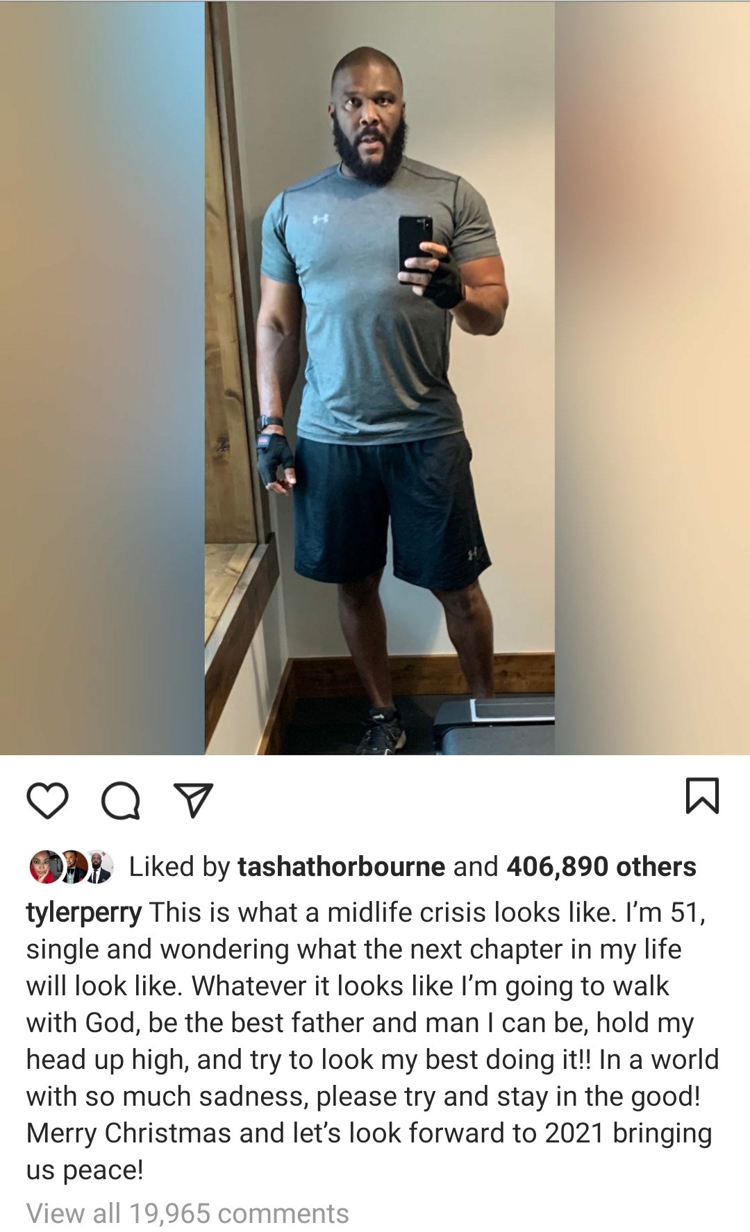 Prominent Hollywood filmmaker and actor, Tyler Perry took to his Instagram page recently to reveal that he’s going through midlife crisis.