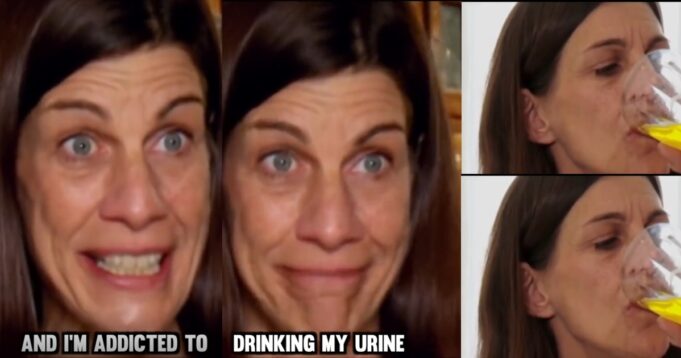 A video trending online captured the moment a 53-year-old woman explained that she is addicted to drinking her own urine.