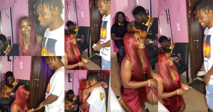 A video showing the moment a Nigerian lady went on her knees to propose to a man presumed to be her boyfriend, has gone viral.