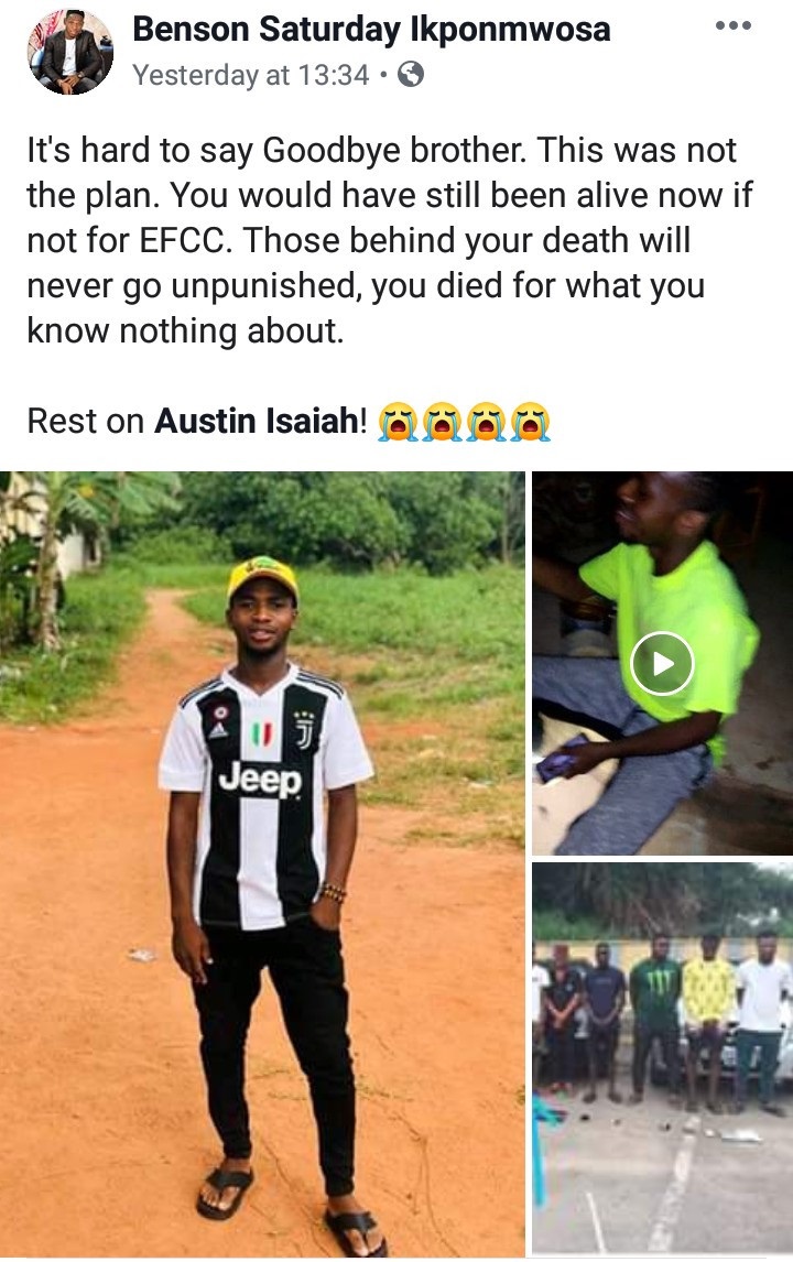 Austin’s friends have taken to Facebook to mourn him while calling out EFCC for his “wrongful arrest”.