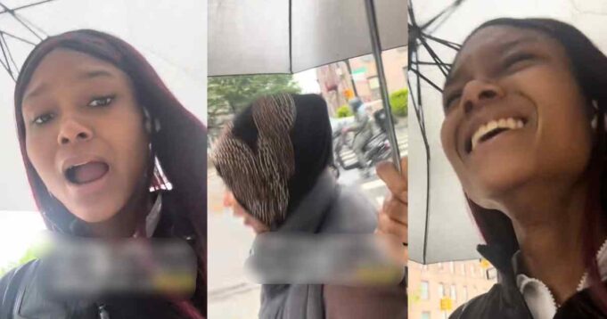 In the clip, the lady @prettydymond_, was astonished that the woman came under her umbrella without greeting, and even felt comfortable walking with her during the rain.