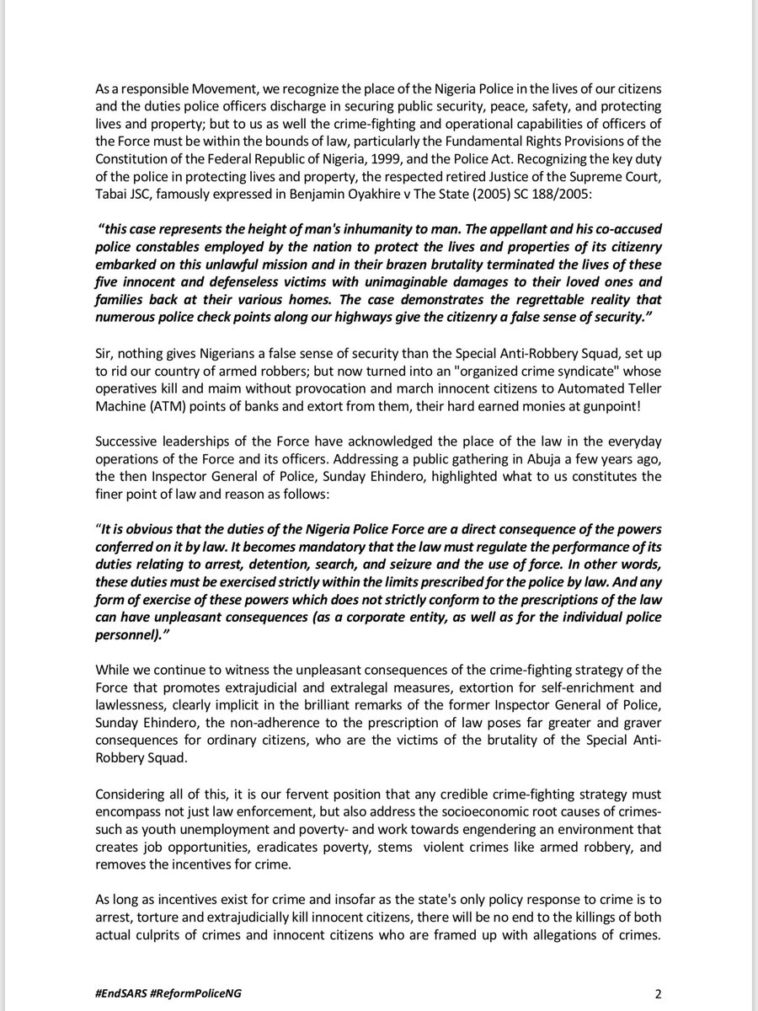 “Following persistent complaints and reports on the activities of the Special Anti-Robbery Squad (SARS) that border on allegations of human rights violations, His Excellency, Professor Yemi Osinbajo SAN, Acting-President, Federal Republic of Nigeria, has directed the Inspector General of Police to, with immediate effect, overhaul the management and activities of SARS and ensure that any unit that will emerge from the process, will be intelligence-driven and restricted to the prevention and detection of armed robbery and kidnapping, and apprehension of offenders linked to the stated offences, and nothing more”.