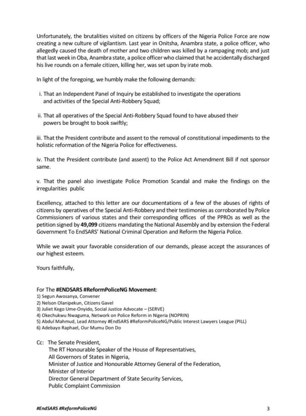 Similarly, I have directed NHRC to set up a Special Panel that will conduct an investigation of the alleged unlawful activities of SARS in order to afford members of the general public the opportunity to present their grievances with a view to ensuring redress. pic.twitter.com/fs9PTz3z9K