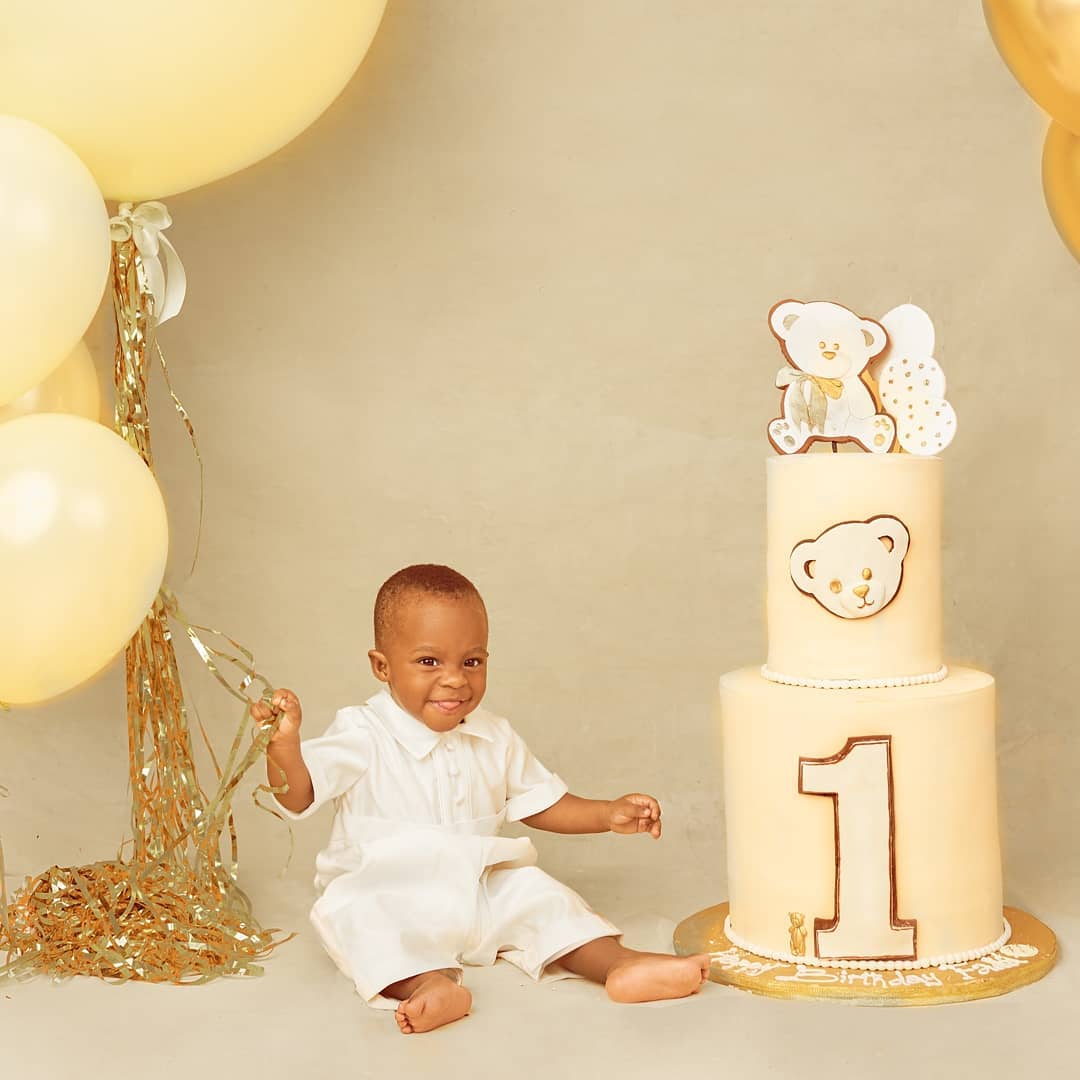The proud father took to his Instagram page to share these adorable photos with his son and wrote: ‘Yipeee!!! And the baby of the house is ONE!!! ALHAMDULILAH!!! All praises and adoration to God Almighty for his life!…Hmmmmm… FADHIL ARIDUNNU omo ADEBAYO. God has made you a source joy us and so shall it be till eternity! My Prince charming!! Ever smiling boy!! My carbon-copy! My replica! … looking at you tells me that I’m good looking! . Happy birthday my boy!! LLNP..we all love you… olorun a tun bo da e si fun wa.’
