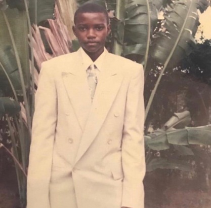 In the spirit of #ThrowbackThursday, Ghanaian actor, John Dumelo shared a photo which shows him wearing an oversized suit as a kid. According to the actor, he was forced to wear the suit by his father.