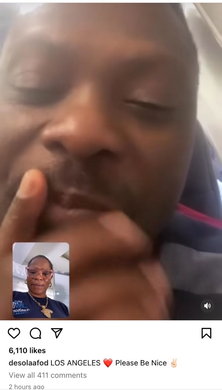 However, this afternoon, in another post making a U-turn from her claim of a marriage crash, Desola shared a video showing her and her husband, Afod, on a video call.