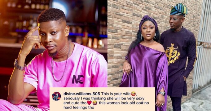 Reacting, the follower stated that she expected the actor to be married to a woman that looks physically attractive and sexy, but instead his wife looks old.