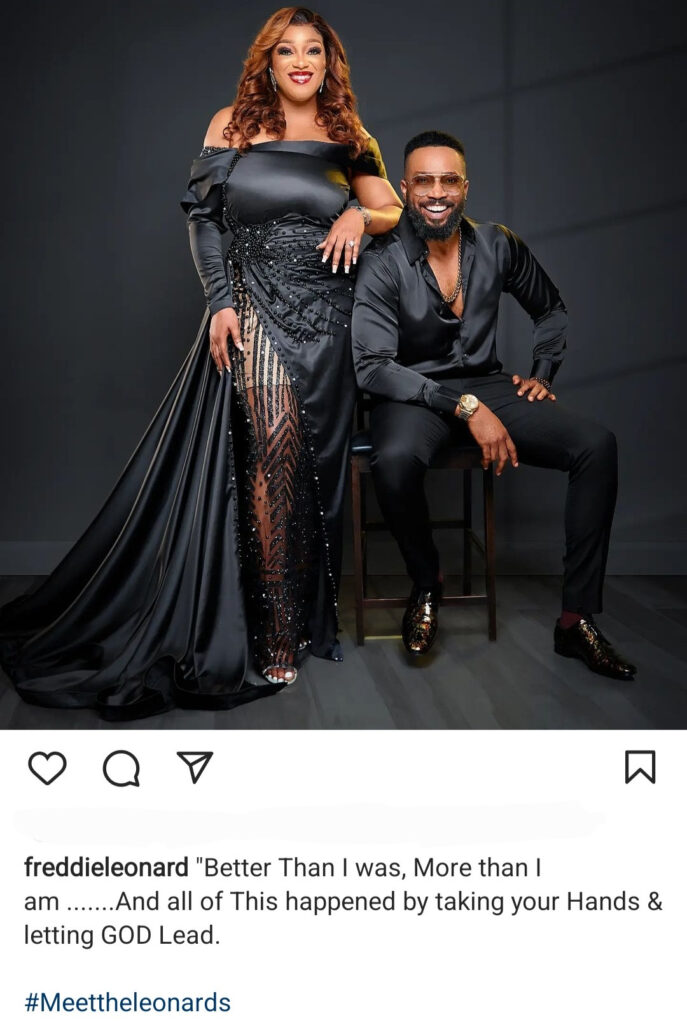 Nollywood actor, Frederick Leonard and his fiancee, Peggy Ovire, have taken to social media to release their pre-wedding photo.