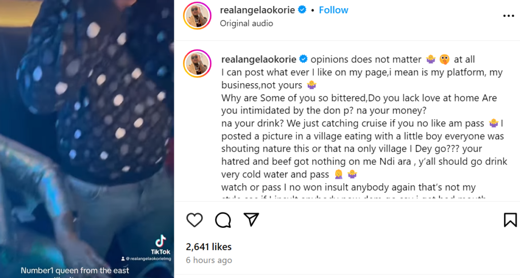 In response to the negative comments, Angela took to Instagram to lash out at her critics for condemning her action and boasted about her wealth and influence in the entertainment industry.