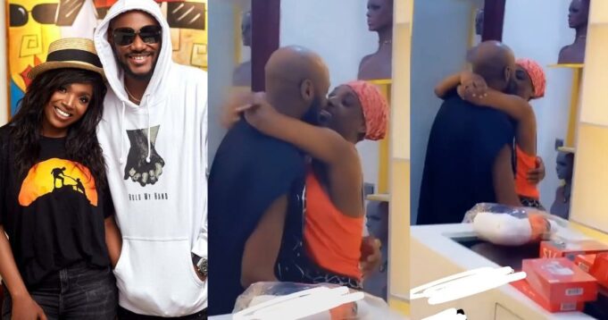 Nigerian music icon, 2Baba Idibia and his wife, Annie Idibia served PDA at a movie location set when the singer surprised his wife while filming.