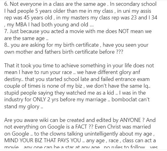 She was tackled by a number of Nigerians on social media, including a movie producer who is acquainted with the actress, for allegedly lying about her age.