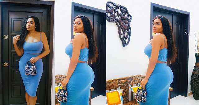33-year-old Nollywood Actress and Entrepreneur, Chika Ike stepped out looking really sexy in her all-blue ensemble paired with a cute Lady Dior bag.