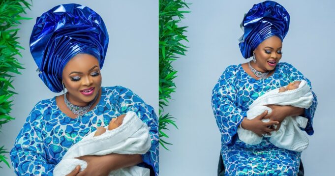 Nollywood actress, Dayo Amusa has taken to social media to reveal her baby’s name, posting stunning pictures to commemorate the special mother-son moment.