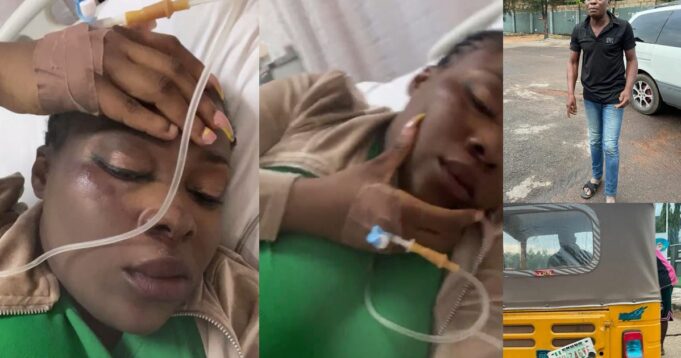 Popular Nollywood actress, Ejine Okoroafor, has been hospitalised after narrowly escaping death at the hands of a commercial tricycle rider in Enugu state on Monday, July 11.