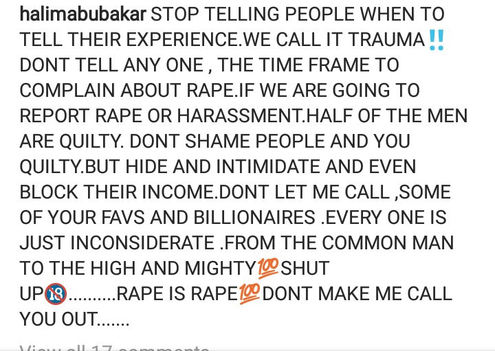 Such people triggered actress, Halima Abubakar as she took to her Instagram to threaten exposing some prominent people who are guilty of rape and are trying to silence women.