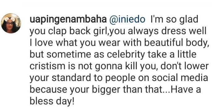 The fan was shocked at the clapback and advised Ini to sometimes take criticism as it would help her.
