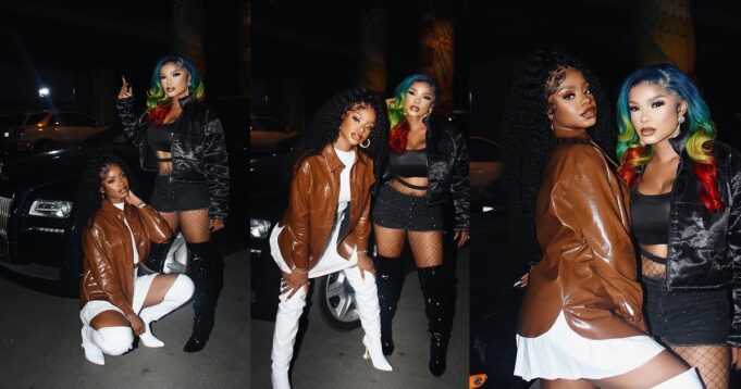 Rocking leather jackets, skimpy tops and lug-sole boots, the duo could easily pass for sisters in the photos which was shared on both their Instagram pages on Sunday evening.