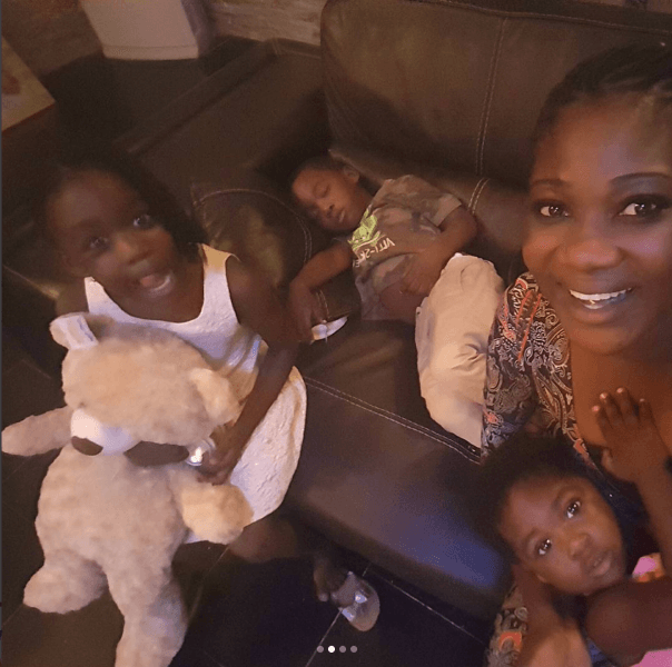 In the several photos via her Instagram page, Her daughter purity, and husband were the “Brain behind the camera”.. Her son, Henry was fast asleep, while their last born, Angel was feeding via the feeding bottle.