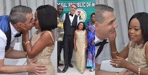 In one of the photos that surfaced online, Miss Koikoi, her groom and two other people, posed for the camera, in a place that seem like a court registry. The photo is guessed to have been taken at the couples court wedding.