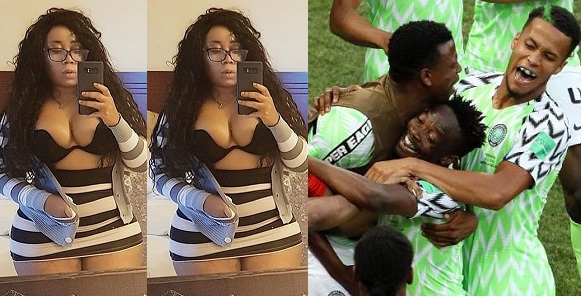As lots of Nigerians and Nigerian celebrities peculiarly, have been celebrating the Super Eagles’ win against Iceland earlier this evening, Nollywood actress, Moyo Lawal has joined in the celebration but has done hers quite uniquely.