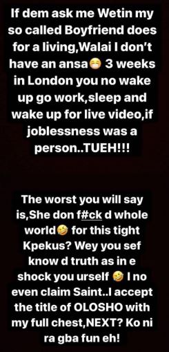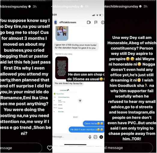 Well, Nkechi isn’t done with him as she took to her IG stories to drag him to filth as she claims she doesn’t know what he does for a living even though they were together for “years”.