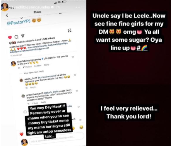 The actress further added that lesbians have been sliding into her DM after Falegan claimed she is a lesbian.