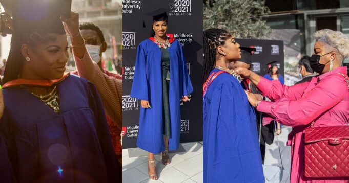 Omotola Jalade-Ekeinde first daughter, Princess, recently bagged a MSc degree from a Dubai University and the Actress cannot contain her Joy.