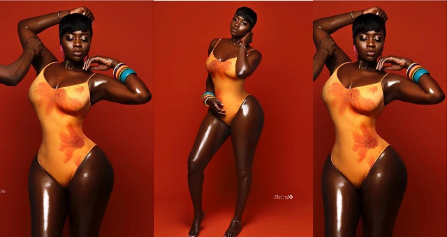 Curvy Gambian Ghana-based has left men drooling on her Instagram page after she shared this sultry photo of herself posing in a  swimsuit with her fat camel toe on display.