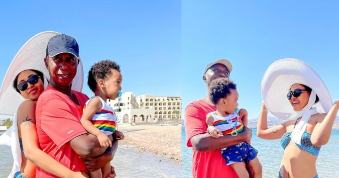 Nollywood actress, Regina Daniels has shared lovely photos with her husband, Ned Nwoko, and son, Munir as they continue to tour historical locations.