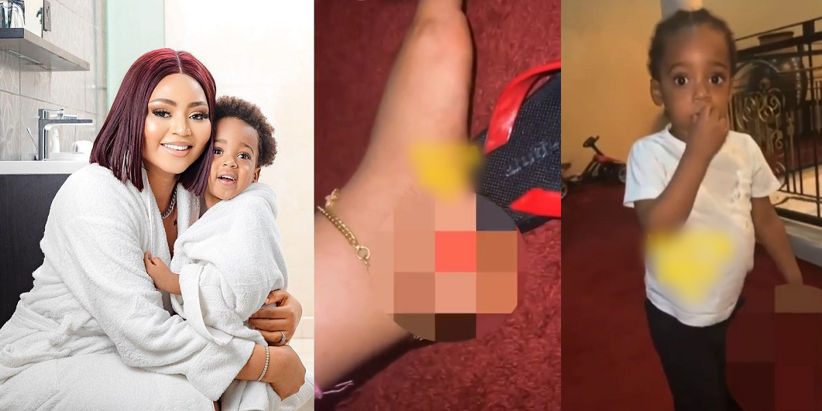 Popular Nollywood actress and billionaire wife, Regina Daniels-Nwoko has suffered a minor leg injury after her son, Munir, smashed a plate on the floor.