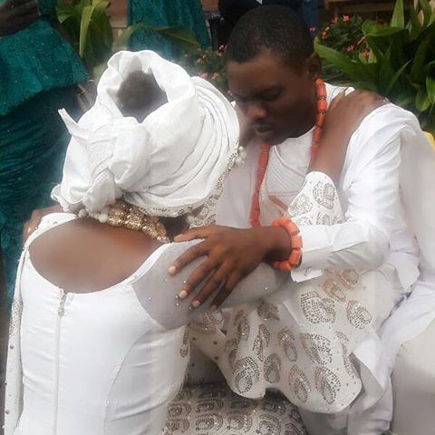 It looks like Nollywood actress, Scarlet Shotade, has broken the norms of the donning a white wedding gown at a marriage ceremony – she’s pictured here in a quite unusual colour for a wedding dress, purple, for her wedding to her heartthrob last Saturday.