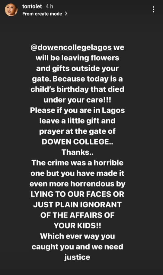 @dowencollegelagos, we will be leaving flowers and gifts outside your gate. Because today is a child’s birthday that died under your care!