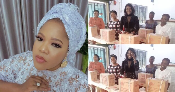 Nollywood actress, Toyin Abraham has given back to her fanbase as she empowered five of her loyal fans with sewing machine.