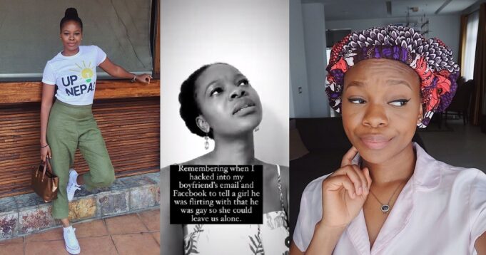 According to her, she hacked her boyfriend’s email and Facebook account to chat with a lady her boyfriend was clearly interested in. She said she lied about her boyfriend’s sexuality so the lady could stay away from him.