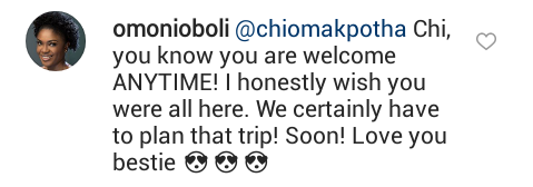 However, the actress is currently in the United States and from the photo shared by Omoni Oboli, she is with husband. They intend to visit Canada for group vacation.