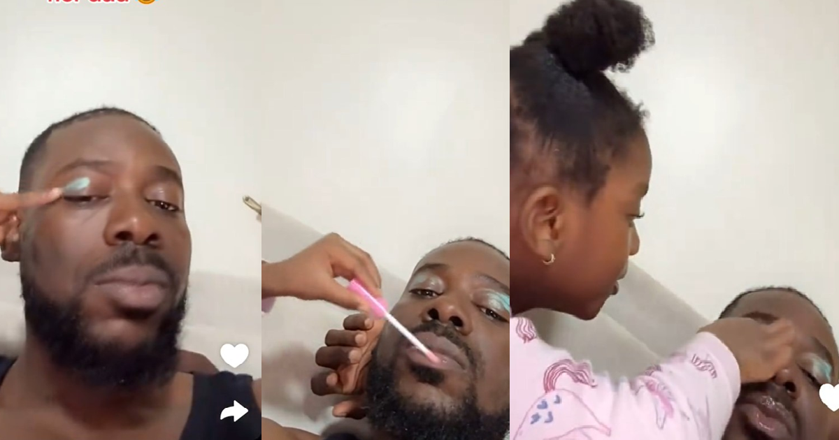 The clip captures little Deja fully stepping into her role as a makeup artist, confidently applying cosmetics to her dad’s face.