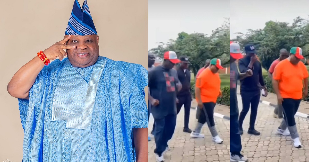 The Dancing senator, Ademola Adeleke has shown off his dancing skills while taking a walk in his compound with his aides.