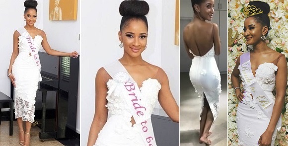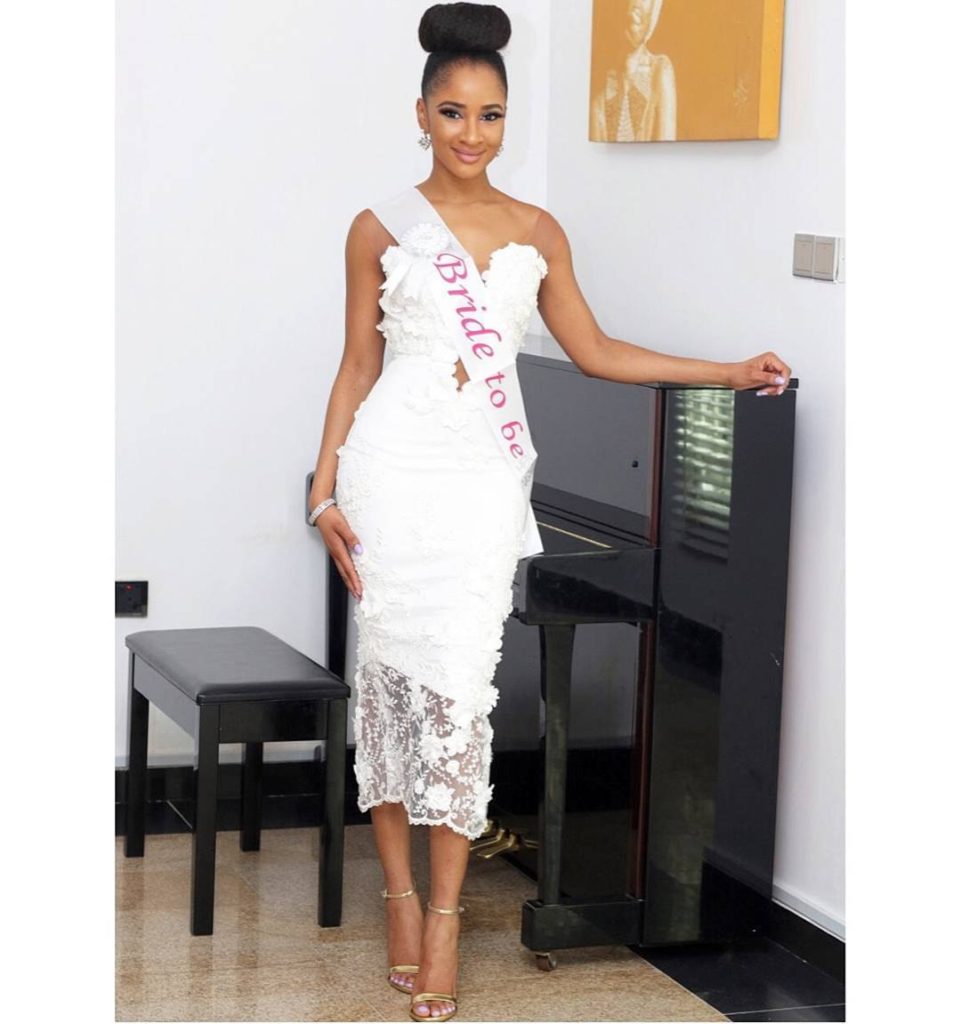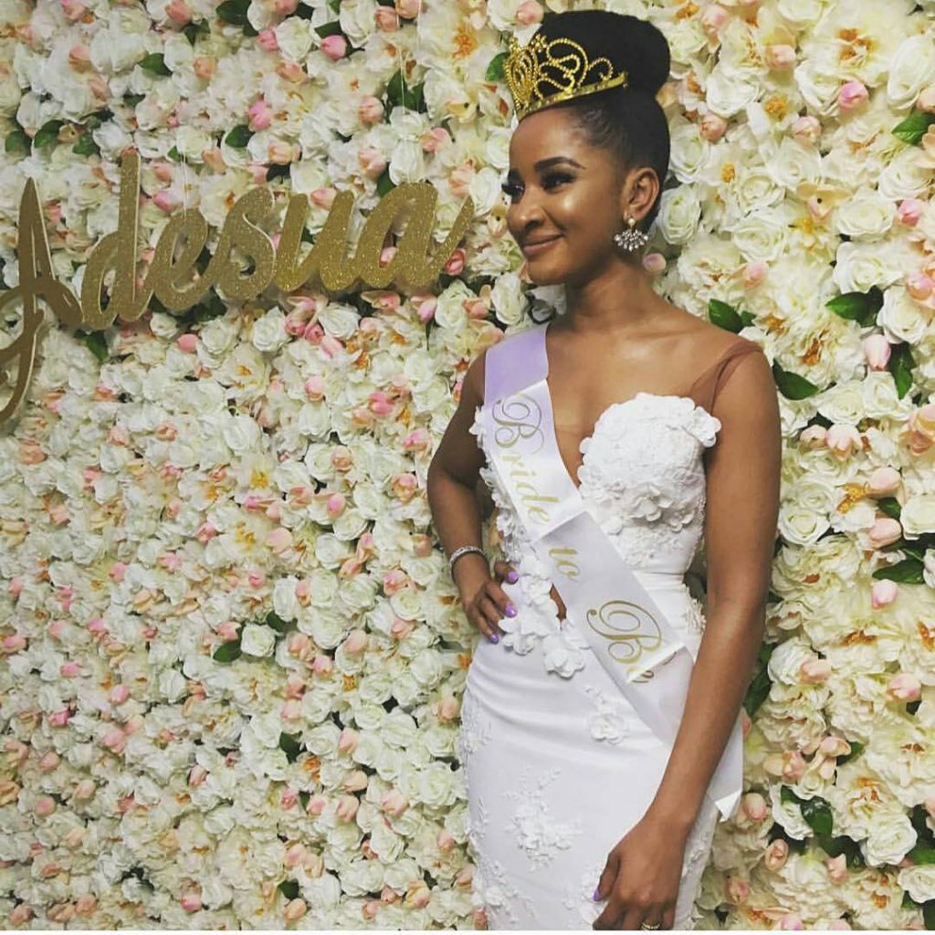 Banky W’s wife-to-be, Adesua Etomi has shared a very beautiful picture of herself, during her bridal shower. She was dressed in a beautiful white dress made by TUBO.