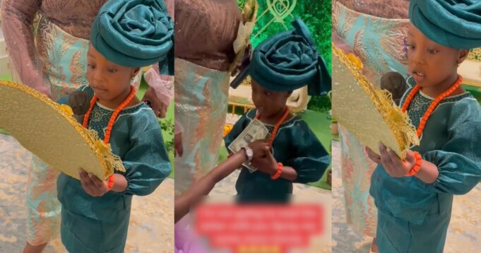 The little girl’s surprising demand elicited laughter from the wedding guests, who immediately mounted the dance floor and sprayed foreign currency on the little girl while dancing.