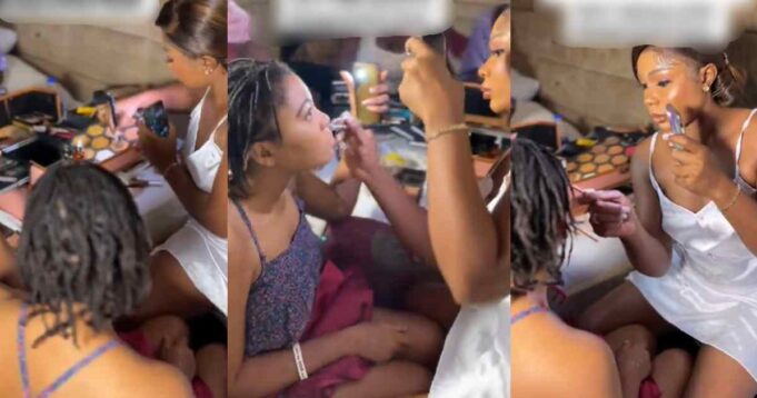 A video posted by @oluwapelumi_visua shows the bride applying makeup on one of her bridesmaids after being disappointed by their booked makeup artist.